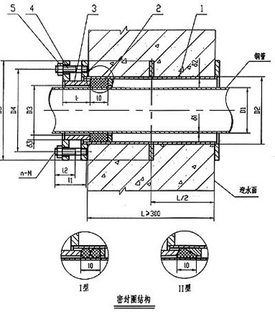 本公司生產(chǎn)的柔性防水套管是根據(jù)建筑科學(xué)研究院研制設(shè)計(jì)的S312/02S404標(biāo)準(zhǔn)圖集制造的。柔性防水套管主要用于管道穿過墻壁之處受有振動或有嚴(yán)密防水要求的構(gòu)筑物,柔性防水套管穿墻處之墻壁,如遇非混凝土?xí)r應(yīng)改用混凝土墻壁,而且必須將防水套管一次凝固于墻內(nèi);柔性防水套管廣泛用于建筑、化工、鋼鐵、自來水、污水處理等單位。